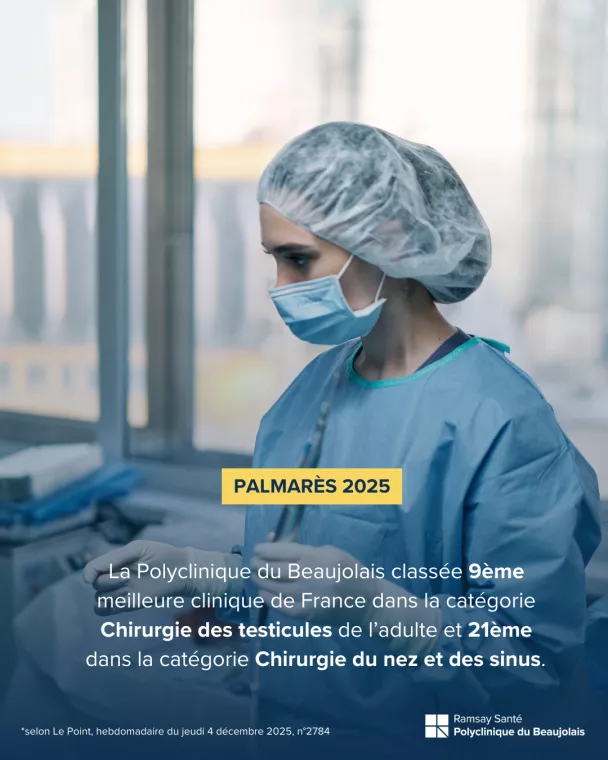 La Polyclinique du Beaujolais se distingue dans la catégorie Chirurgie des testicules de l’adulte (9ème place) dans la catégorie Chirurgie du nez et des sinus (21ème place)